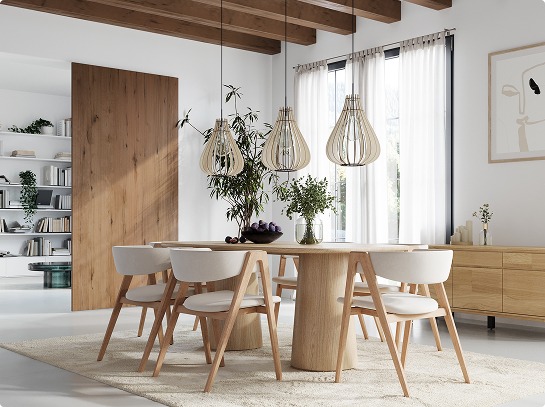 In this series for LeuchtNatur, we have crafted renders of pendant lamps, wall lights, and standing lamps, each highlighting the unique textures and beauty of the natural materials used. These renders not only emphasize the aesthetic appeal of LeuchtNatur's products but also demonstrate their commitment to sustainability. By incorporating materials such as wood, leaves, and grasses, these lamps blend seamlessly into the cozy interior, creating a harmonious environment that is both stylish and eco-friendly.
